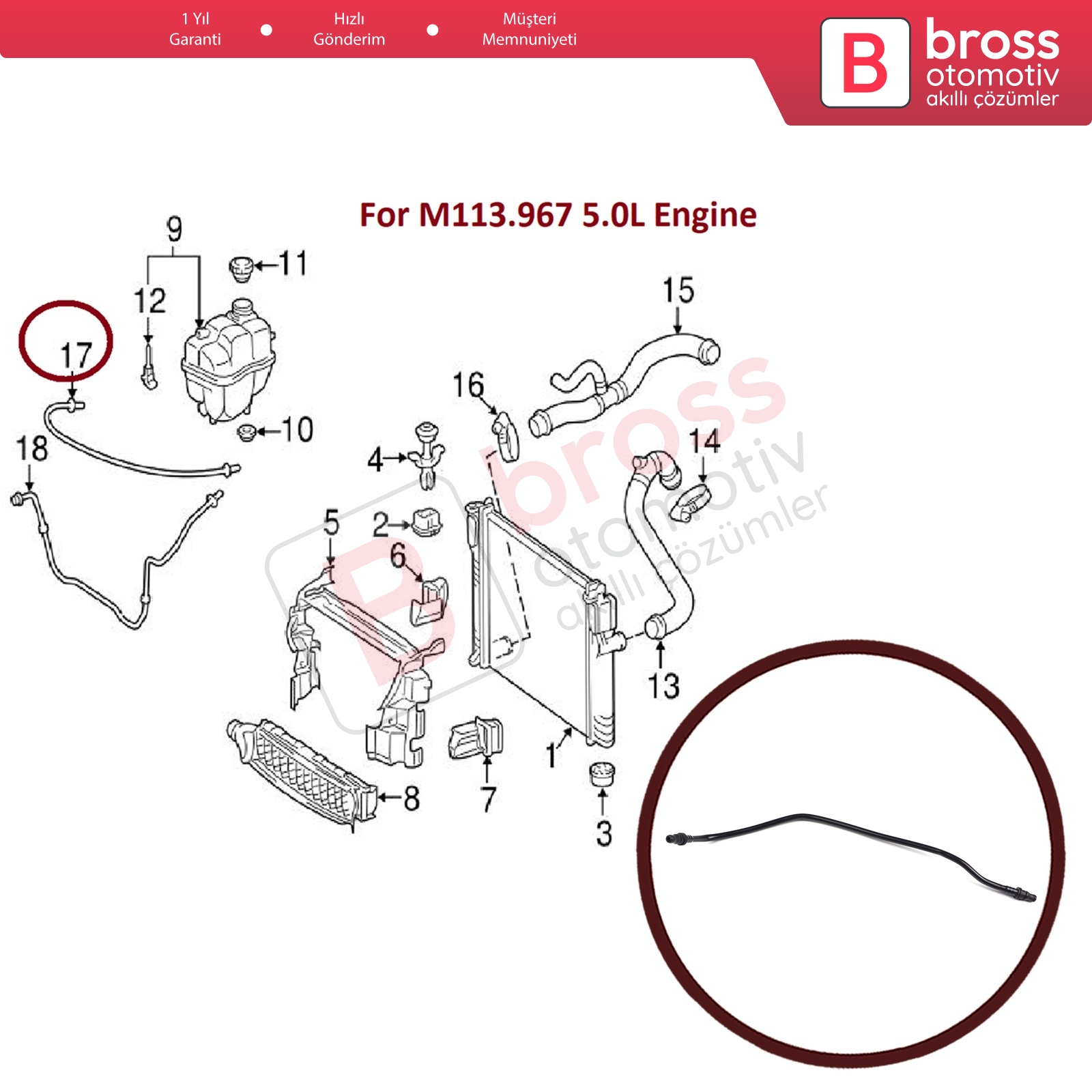 Mercedes W211 E 500 C219 CLS 500 M113.967 için Motor Soğutucu Havalandırma Borusu Kurtarma Tankı Hortumu Motordan Genleşme Tankına Soğutma Suyu Fanı Hortum Hattı 2115010125