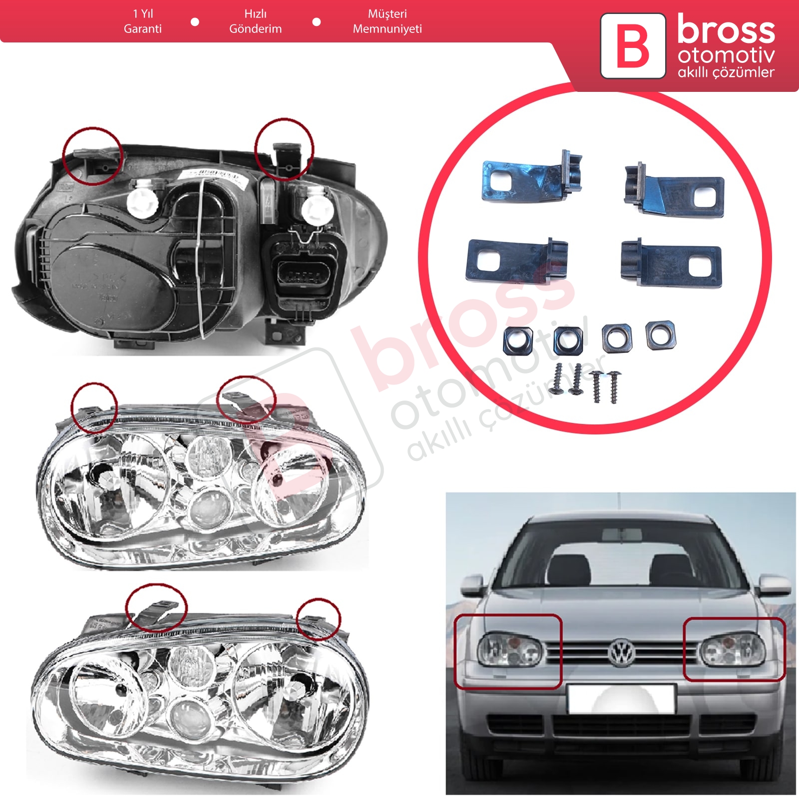 VW Golf MK4 A4 1J HB Sedan Estate 1997-2006 1J0998225 1J0998226 İçin Sağ ve Sol Ön Taraf Far Ayak Yuva Tutucu Tamir Seti
